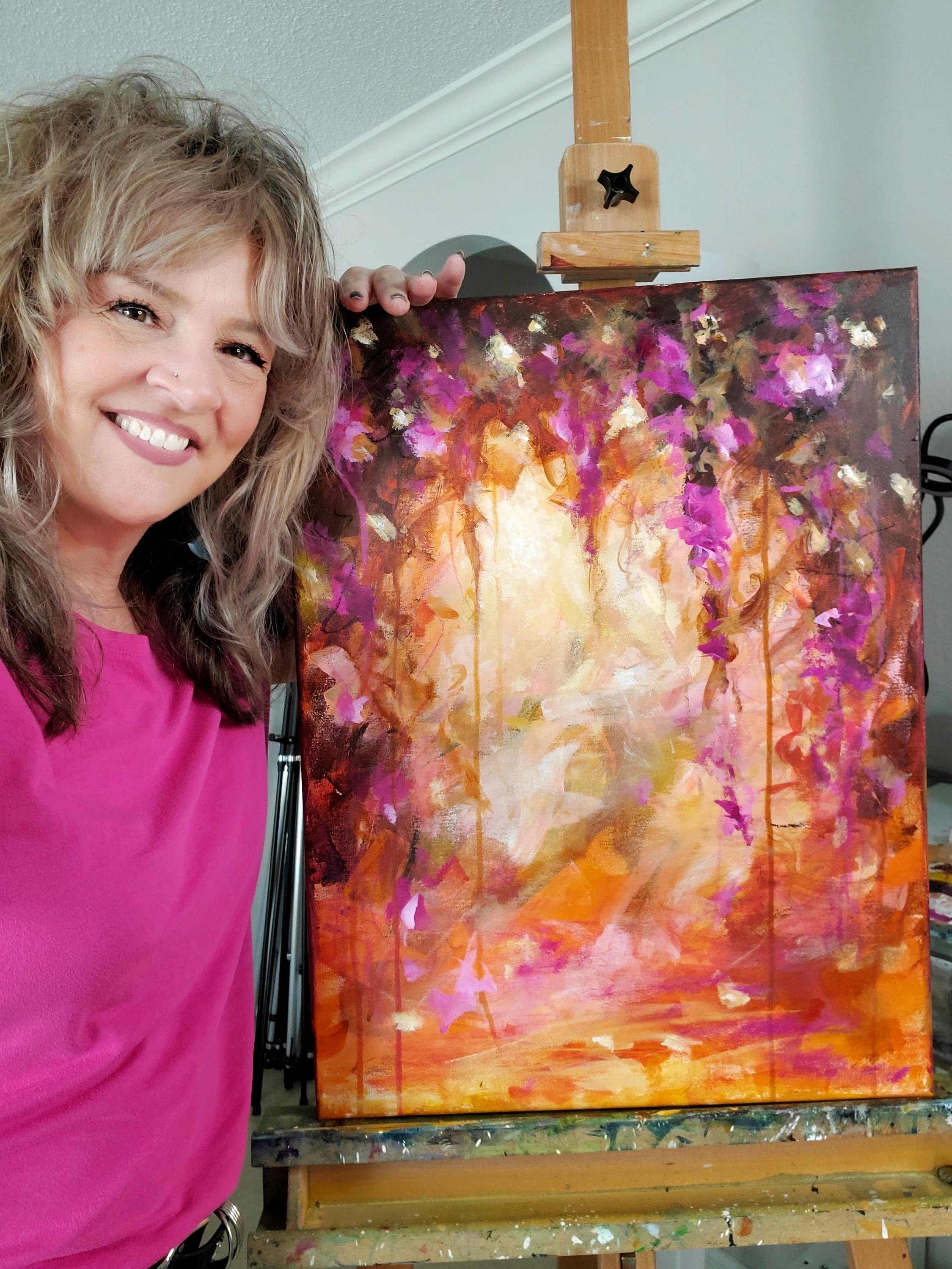 Loved the class!!! Learned the importance of the "light portal" which very much adds to the "dreamy" and "mysteriousness" of an abstract! Also learning to keep going past the "ugly" stage which has always held me back in the past! I learned that there is so much more to an abstract than just slinging some paint around! Can't thank you enough for sharing your talent with us, Terry, and looking forward to so much more!